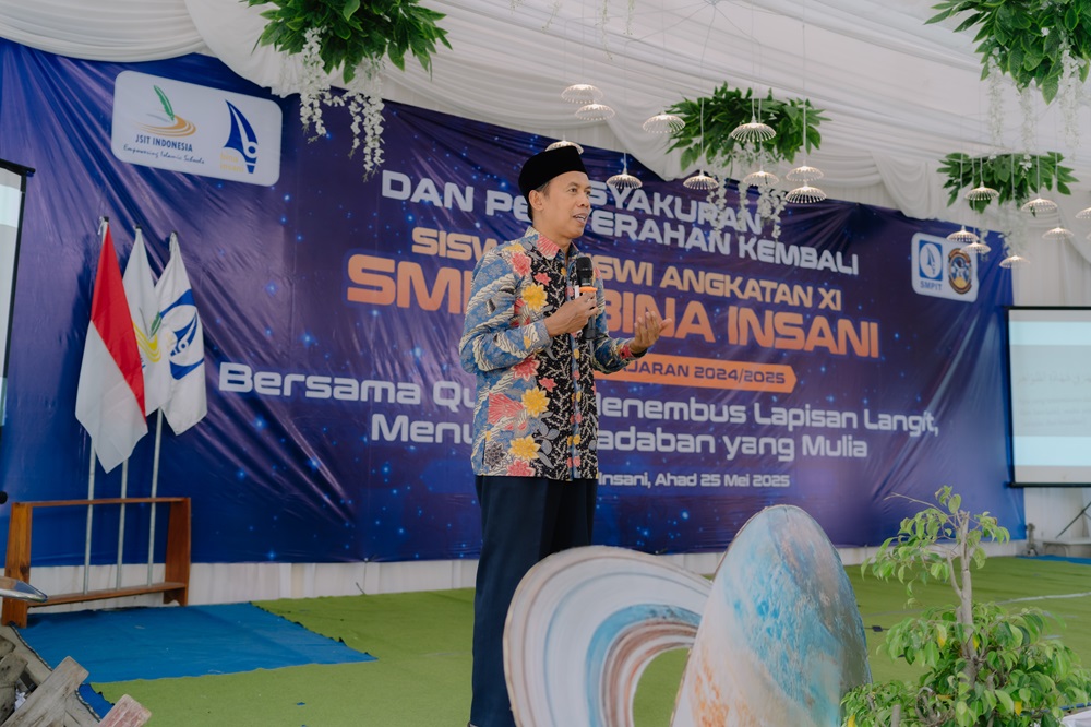 Idrus Asnawi, S.Kom., Kepala SMP IT Bina Insani Kediri, menyampaikan kebanggaan dan harapan besar bagi para lulusan.
